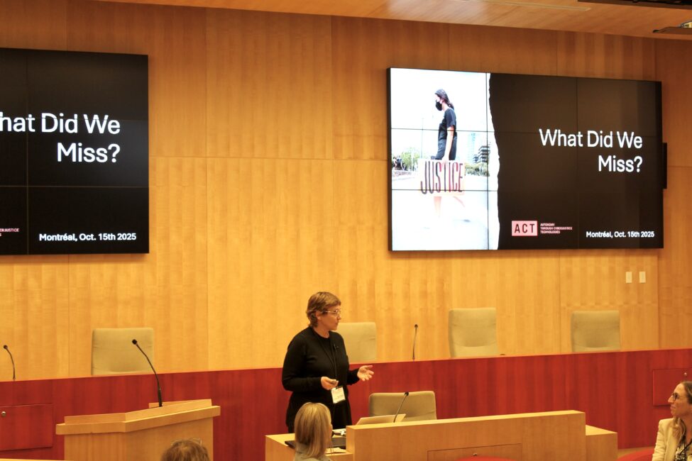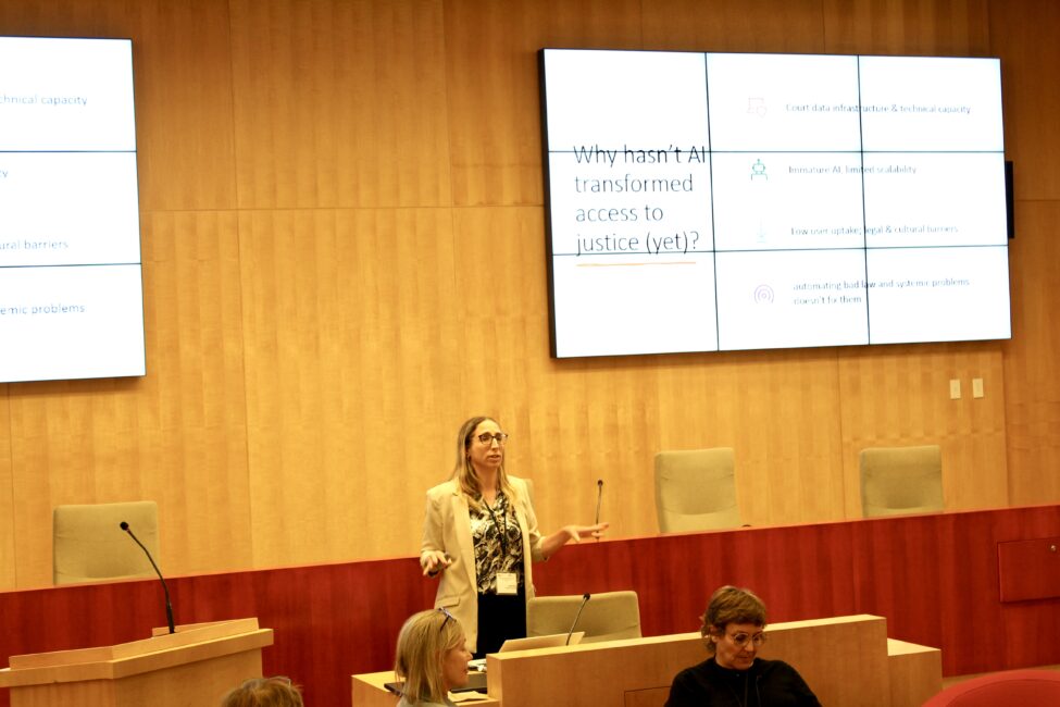 Le troisième panel a examiné ce qui reste négligé dans la quête visant à faire de la technologie, en particulier de l’intelligence artificielle, un véritable instrument d’accès à la justice. Présidée par Jacquie Burkell, la discussion a réuni des points de vue provenant du gouvernement (McKinnon), du monde universitaire (Sela), de la sociologie (Gentelet) et de la conception technologique (Lupo). Les participants ont convenu que pour que la justice soit équitable à l’ère numérique, elle doit rester centrée sur les personnes et être participative.